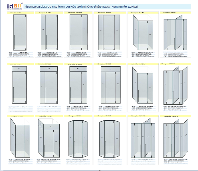 Cánh mở: Cánh mở quay trong/ngoài, bản lề kẹp kính trục xoay